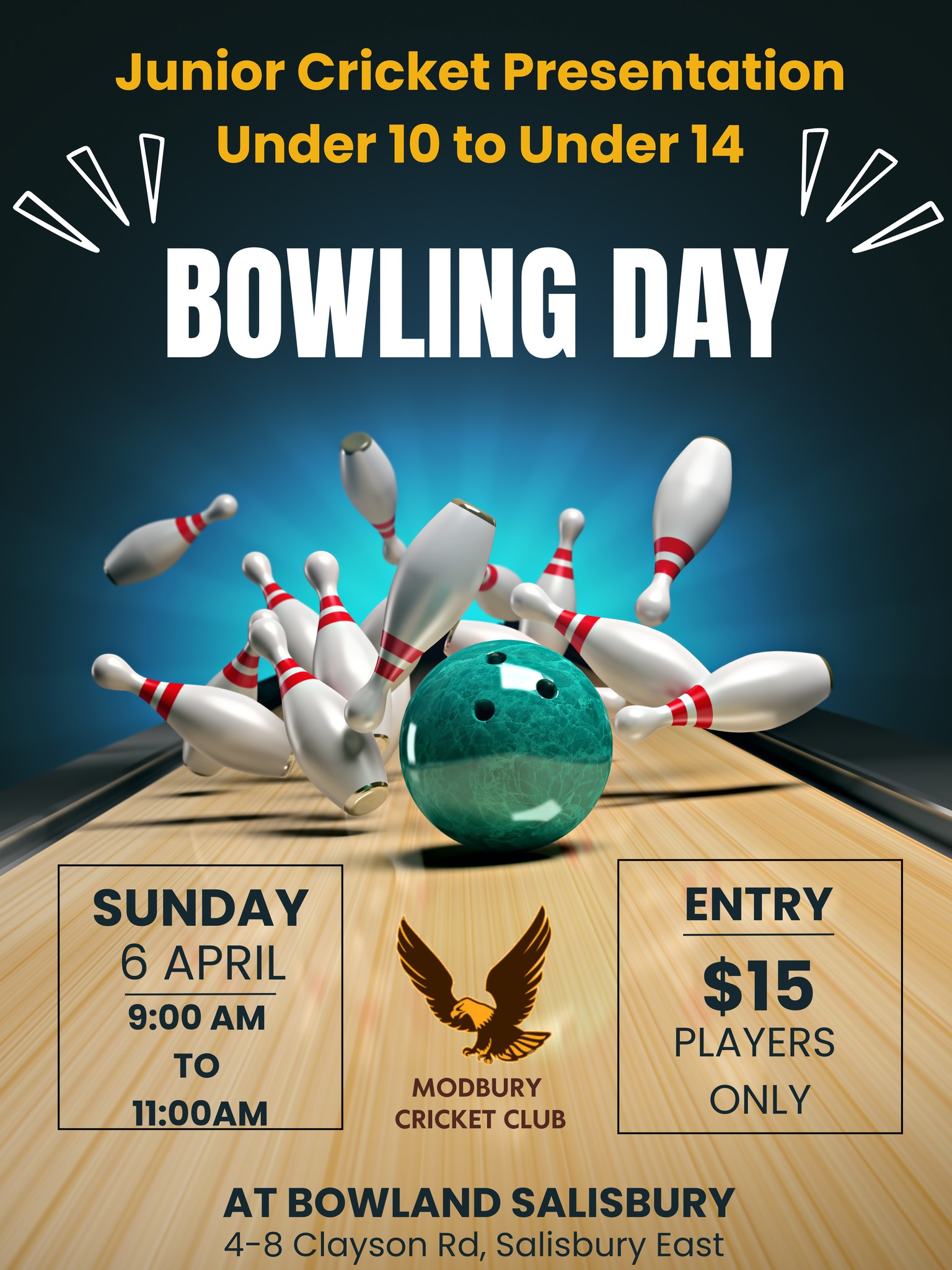 With the 2024/25 season coming to a close, it is now time for presentations. Join us at the Salisbury Bowland as we celebrate the Junior cricket season on the 6th of April from 9-11 am! ![]()