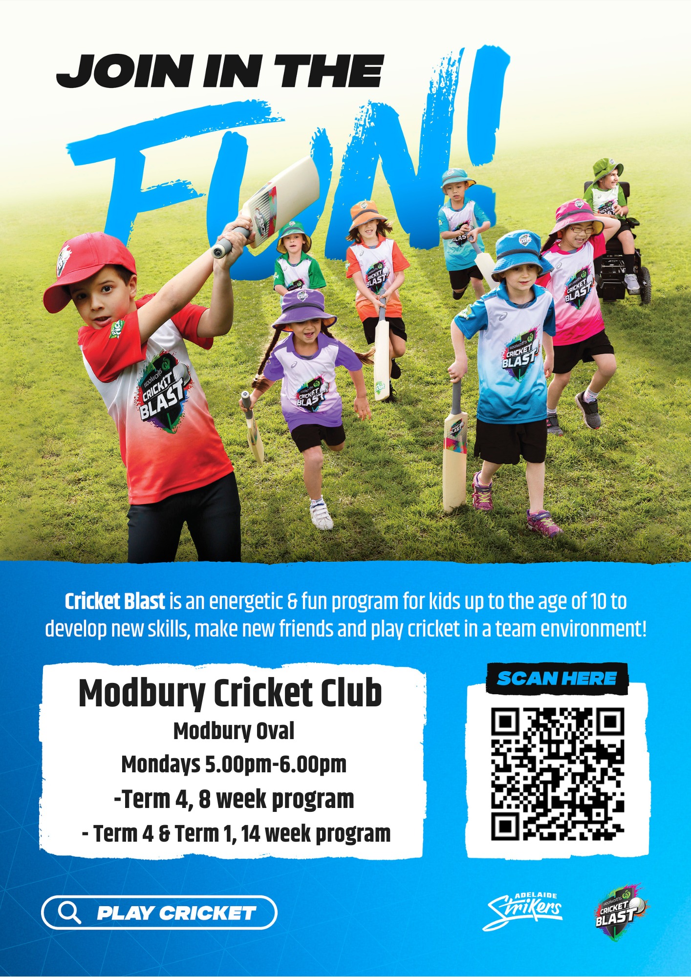 Cricket Blast is an energetic and fun program for children aged 7-9 to play cricket and make new friends! Unfortunately with the 2024/25 cricket season coming to a close, registrations are no longer open but stay tuned for the next round of Cricket Blast to get involved with the Modbury Cricket Club!